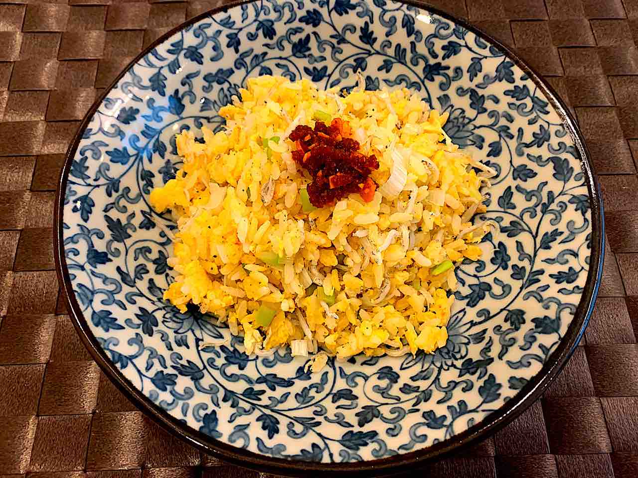 平日でお野菜もほとんど使い切ってしまい、長ネギくらいしかなかったので、余り物でチャーハンを。