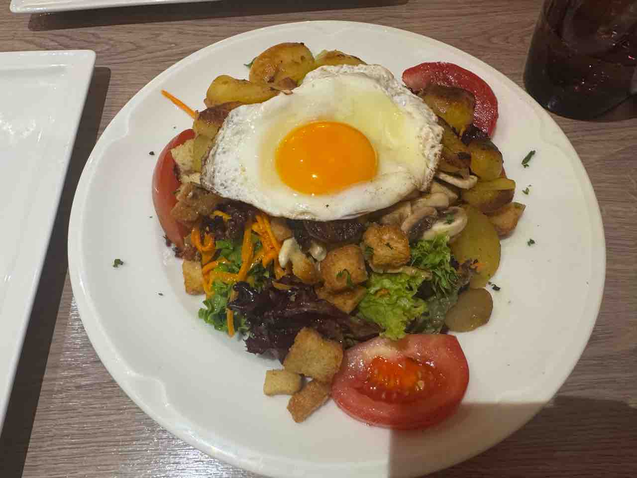 目玉焼きの乗ったサラダも頼みましたがこちらにもじゃがいもがたっぷり🥔