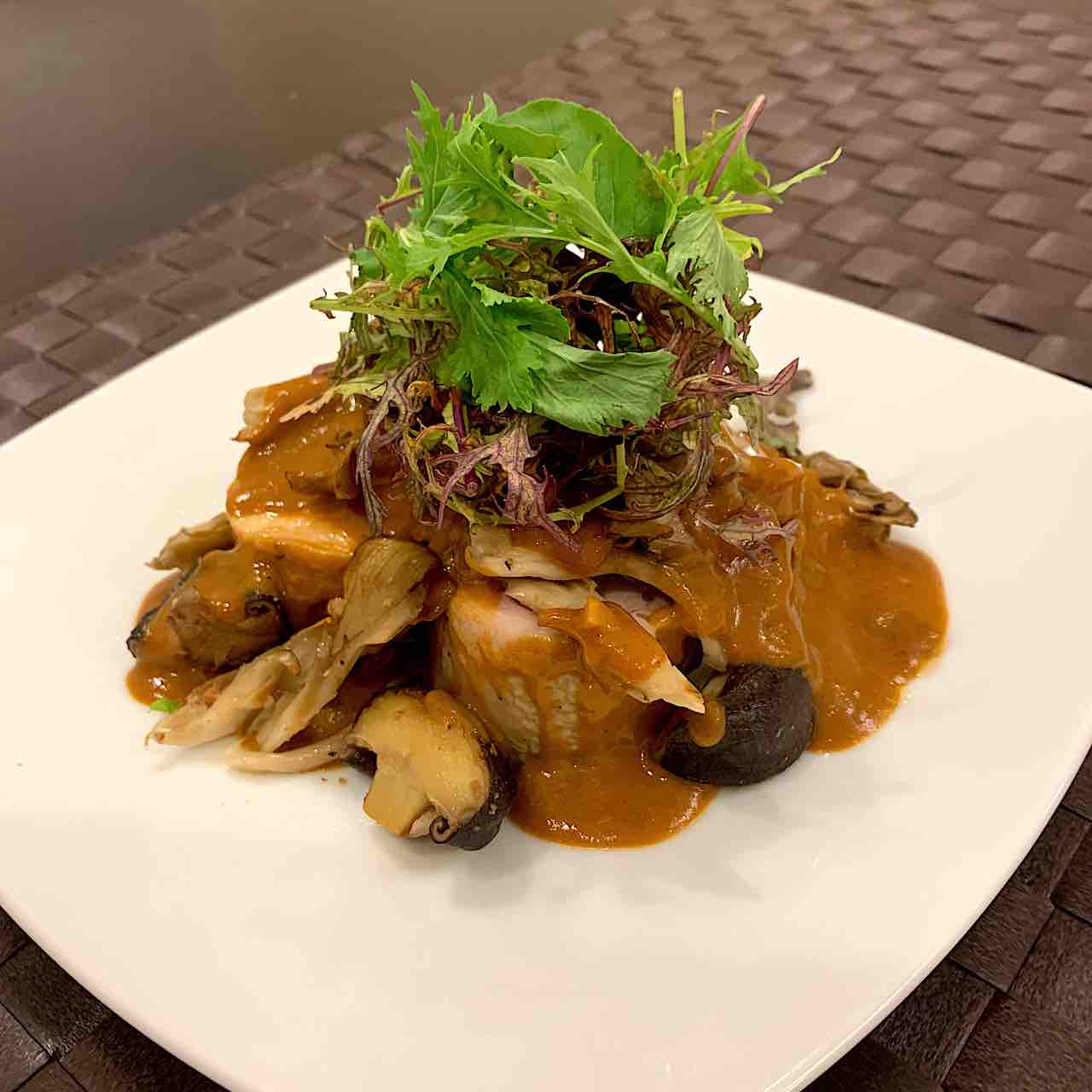 お家でビストロ風チキンロールきのこデミグラスソース。