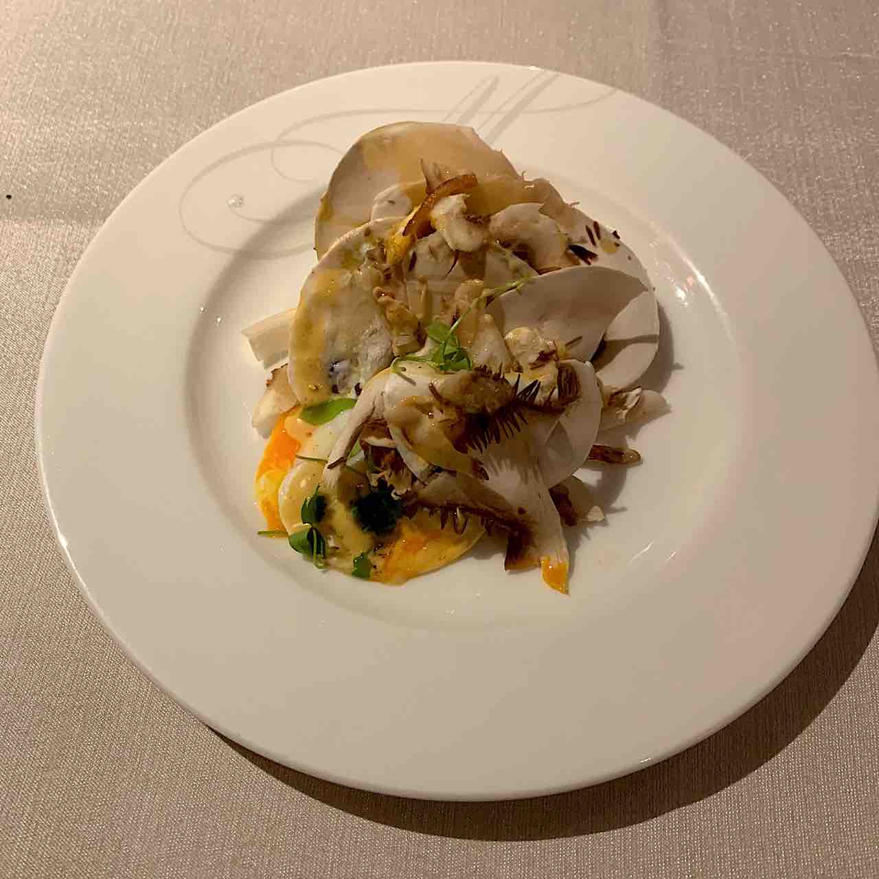 生のマッシュルームサラダはトリュフが入っていて良い香り