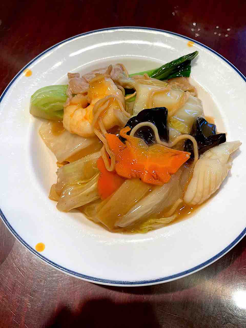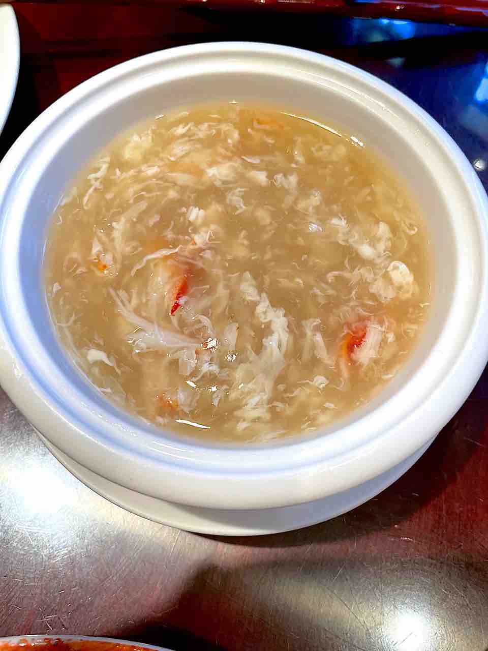 2021年04月10日 横浜中華街萬珍樓 今日は横浜中華街へ。特に用事があったわけではないのですが、天気も良かったので、たまにはドライブを。長瀬 充先生おススメの菜香新館は、週末はいつもいっぱいで入れなかったので、ネットで探してこちらの飲茶屋さんへ。・皮付き豚のサクサク窯焼き・フカヒレスープ蟹入り・海老の神包み揚げ・海老春巻き・五目餅揚げ・子豚餃子・五目あんかけ焼きそば五目餅揚げと豚のサクサク窯焼きおススメ
